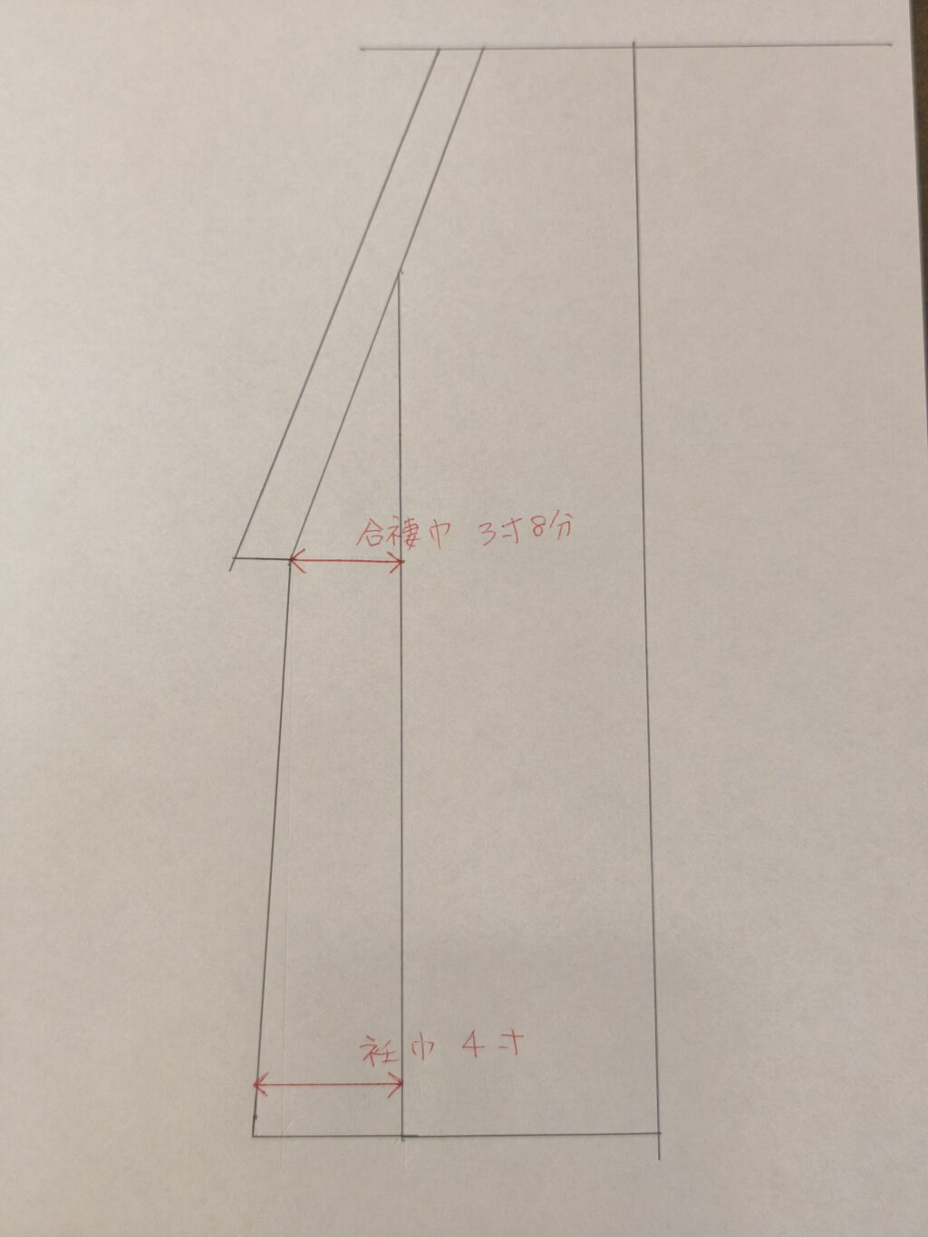 ※図では合褄巾が3寸8分になっていますが、3寸5分まで狭くする